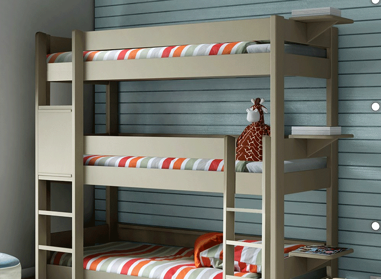 This three tiered Dominique triple bunk bed by Mathy by Bols is the perfect solution for twins, triplets, kids with sleepover buddies, kids who struggle to sleep at night without mum or dad at hand, kids with imaginary friends - in fact, this bed is quite simply a winning purchase for any small person's bedroom! Not only is this triple bunk space saving, it is available in a choice of 26 colours.