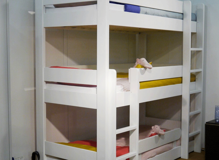 This three tiered Dominique triple bunk bed by Mathy by Bols is the perfect solution for twins, triplets, kids with sleepover buddies, kids who struggle to sleep at night without mum or dad at hand, kids with imaginary friends - in fact, this bed is quite simply a winning purchase for any small person's bedroom! Not only is this triple bunk space saving, it is available in a choice of 26 colours.